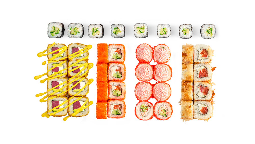 Tuna Sun – 8 kom, Kalifornija Losos – 8 kom, Vulkan – 8 kom, Bonito – 8 kom, Rolnice Krastavac – 8 kom