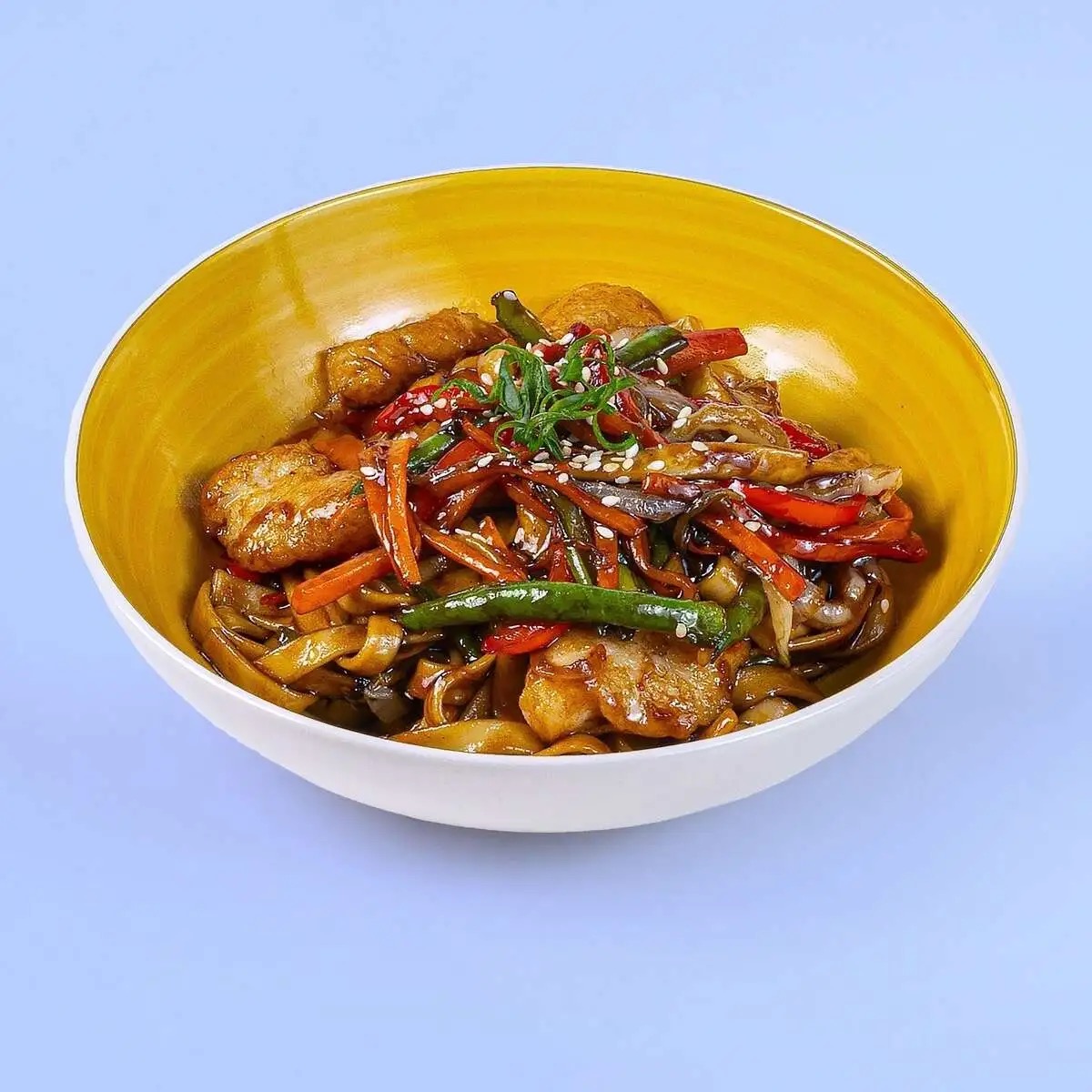 Vok s pirinčanim rezancima i piletinom u terijaku sosu